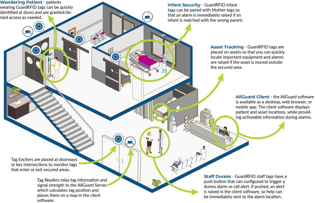Patient health and safety is the number one priority for healthcare organizations, and active RFID tags can make a real difference. From infants to seniors, patients can be tracked with Real-Time Location Systems (RTLS), such as a small and wearable tag, to locate patients and monitor movement.