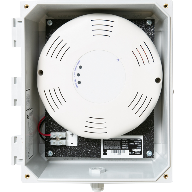 The Outdoor Tag Exciter (OTE) is a Tag Exciter housed inside a NEMA 4 rated enclosure for outdoor use. The Tag Exciter creates a low frequency field that triggers tags to confirm their position to the AllGuard® software.